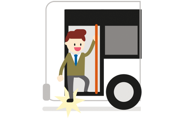 Para moverte dentro del autobús utiliza las barras y asideros.