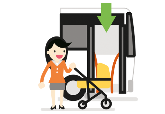 El acceso de los carritos de bebés se ha de realizar por la puerta delantera. El niño debe estar correctamente sujeto y el carrito con los frenos puestos.